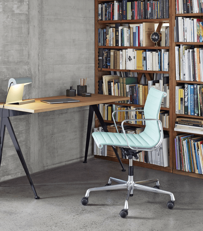 Fotel Aluminium Chair EA 117 / 119 należy do legendarnej serii Aluminium Group, zaprojektowanej przez Charlesa i Ray Eamesów w 1958 roku. Wersja EA 117 / 119 została stworzona z myślą o komforcie pracy przy biurku – oferuje niskie lub wysokie oparcie oraz funkcję regulacji wysokości i odchylania, co czyni ją idealnym wyborem do nowoczesnych stanowisk pracy. Model ten charakteryzuje się lekką, ale stabilną aluminiową ramą, precyzyjnym wykończeniem oraz napiętą tapicerką dostępną w skórze i tkaninach. Dzięki temu fotel dopasowuje się do kształtu ciała, zapewniając ergonomiczne podparcie przez cały dzień. Obrotowa podstawa z kółkami gwarantuje mobilność, a elegancki, smukły profil podkreśla jego profesjonalny charakter. EA 117 / 119 to klasyk wzornictwa, który doskonale łączy funkcjonalność, komfort i estetykę. To wybór dla osób, które cenią jakość i ponadczasowy styl.