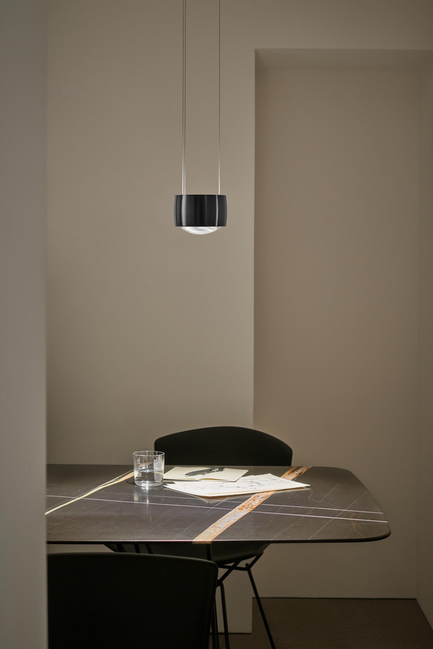 To, co wyróżnia Sento Sospeso, to jej intuicyjność i łatwość obsługi. Oprawa, pozornie nieważka, unosi się na wybranej przez Ciebie wysokości, zawsze zachowując idealny poziom. Dzięki temu w subtelny sposób pomaga Ci stworzyć relaksujący efekt świetlny, dostosowany do Twojego nastroju i okoliczności. Z Sento Ssspeso, esencja komfortu i wygody staje się integralną częścią Twojej jadalni.